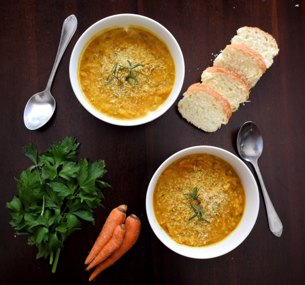 Onto today’s meal. Soup. And no- soup is not for the senile and toothless, soup can be a delicious appetizer that can be enjoyed by people of any age regardless of what their dental situation is. And this soup is not for the faint-hearted, it bites back. Hard. No worries if you’re not a fan of chilli and spice, I won’t judge you (out loud) you can just choose to reduce the amount of curry powder you add, omit it all together, or increase the amount of coconut milk you add when serving. f you’re not a fan of butternut, you can swap it out for another vegetable like pumpkin or cauliflower with this recipe, you will just have to adjust the cooking times as necessary.