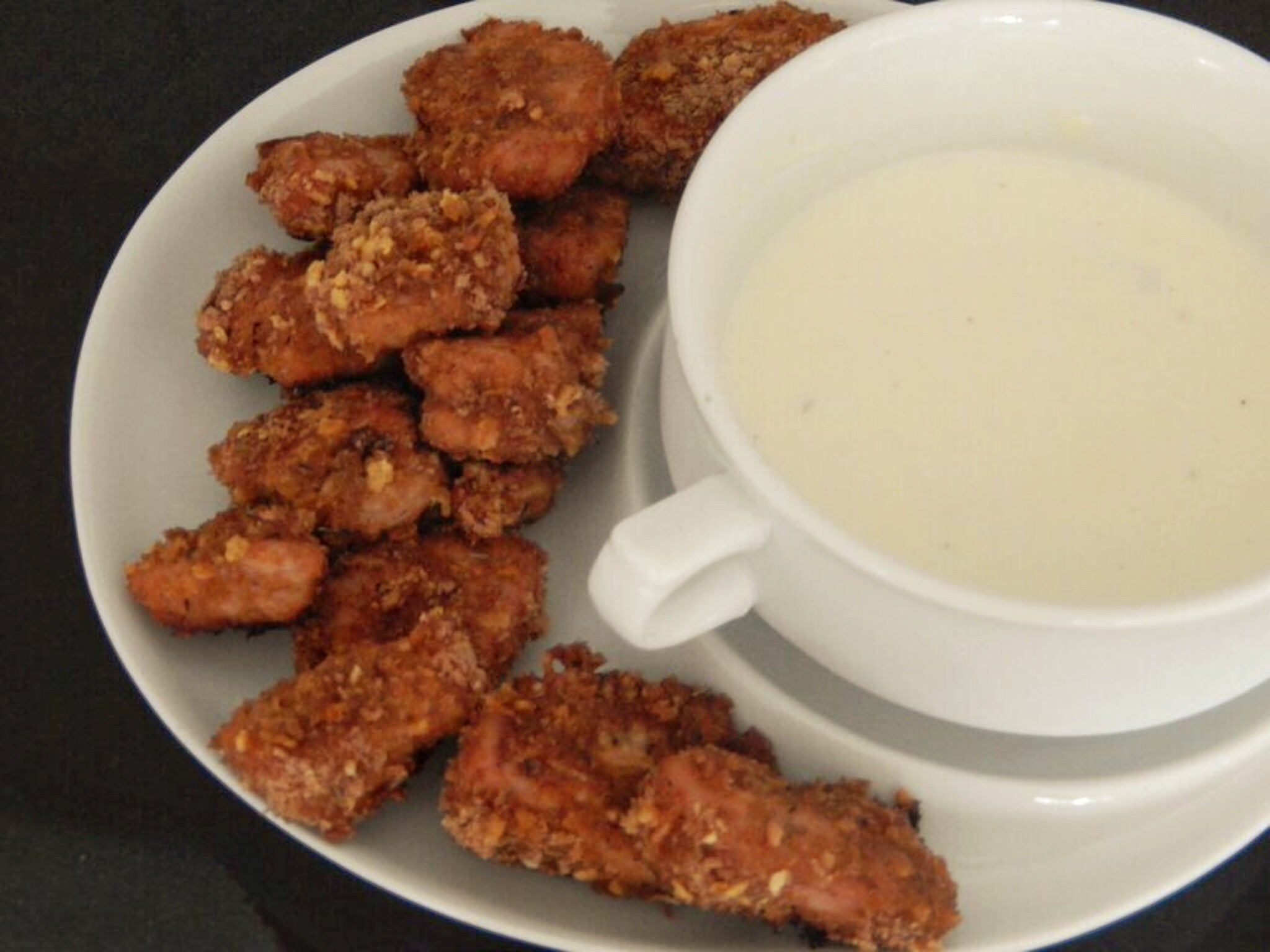 I like to serve this with a ranch dressing dip, recipe adapted from Spoon Fork Bacon, under their recipe for these stellar Chicken Fried Potatoes, calling them amazing would be an understatement.