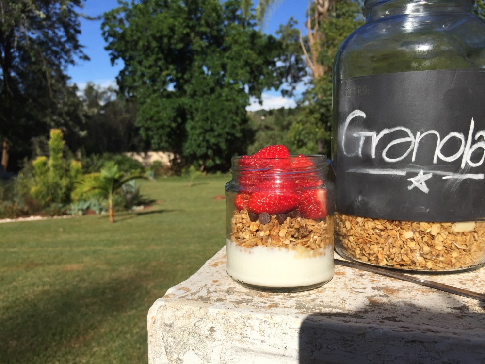 - Let cool on your counter for about 10 minutes before storing in a tightly sealed glass jar, serve with yoghurt and fresh fruit, or with milk, or just eat straight from the jar! I added chocolate chips to mine, but you could also add seeds, more nuts or grated chocolate.