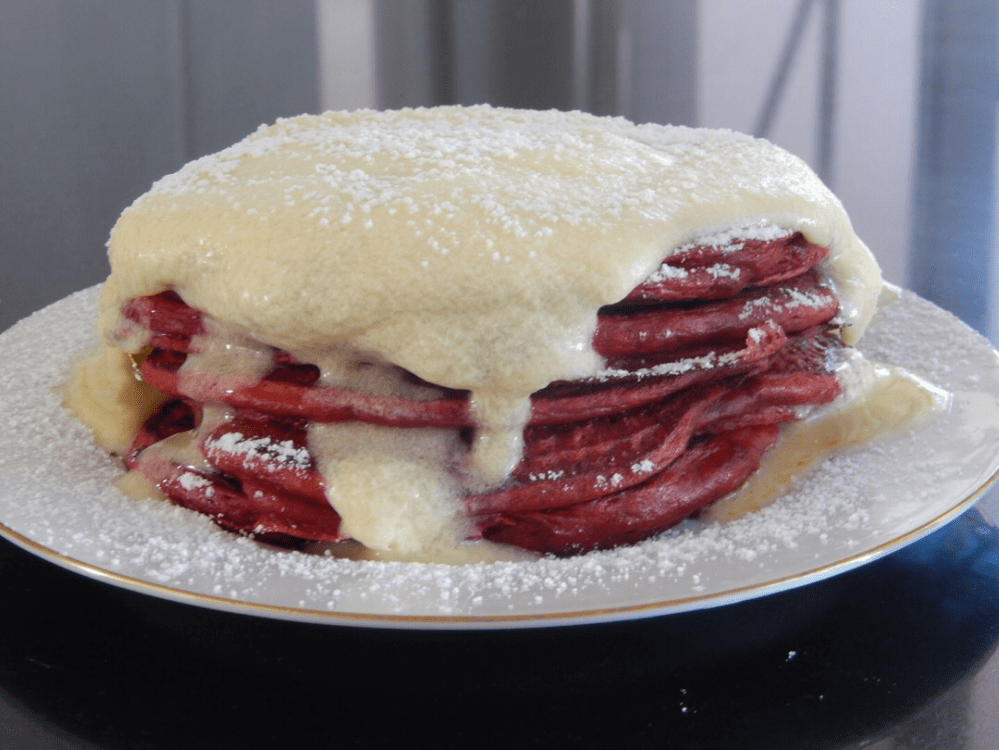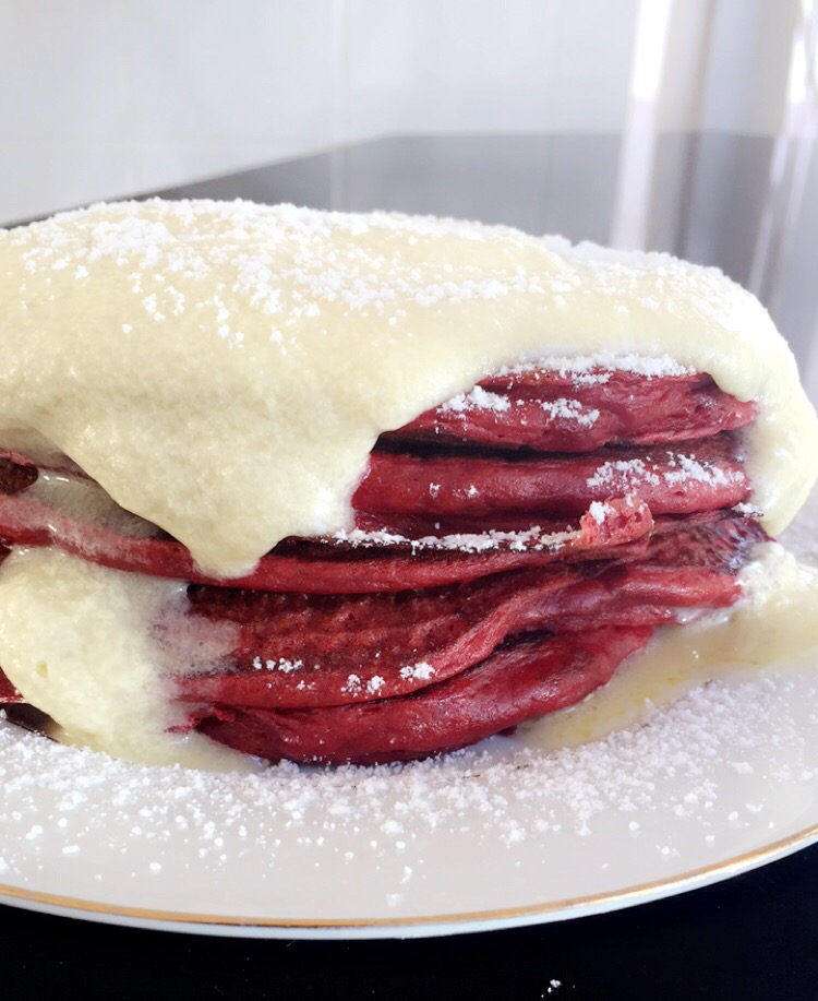 Red Velvet Ricotta Buttermilk Pancakes yields 8-10 pancakes