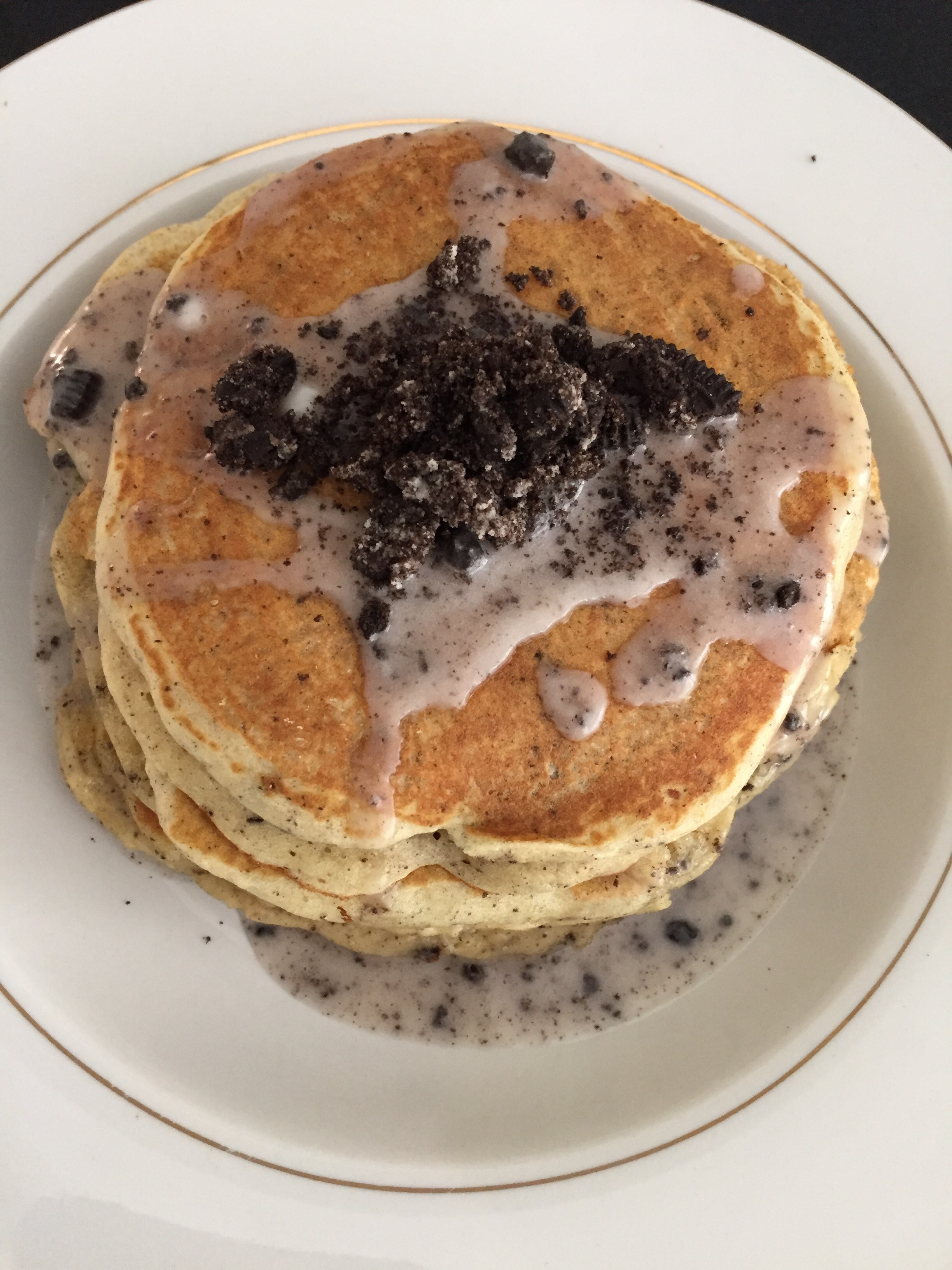 I suggest that you start with this great recipe for Oreo Pancakes by Must Come Hungry. It rocks.