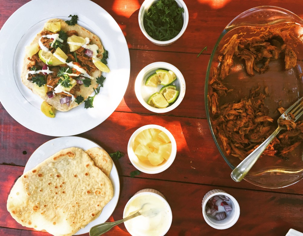 Shredded pork tenderloin has many uses besides carnitas, you can stick it in wraps, pizzas, you can even top your fries with it! I would advise you to make this on a Sunday night, then use the leftover shredded pork as you wish throughout the week. Meal prep on fleekThe really nice thing about carnitas is that they’re easily customised so you can make it your own. I topped mine with red onion, pineapple, parsley, lime wedges and sour cream.
