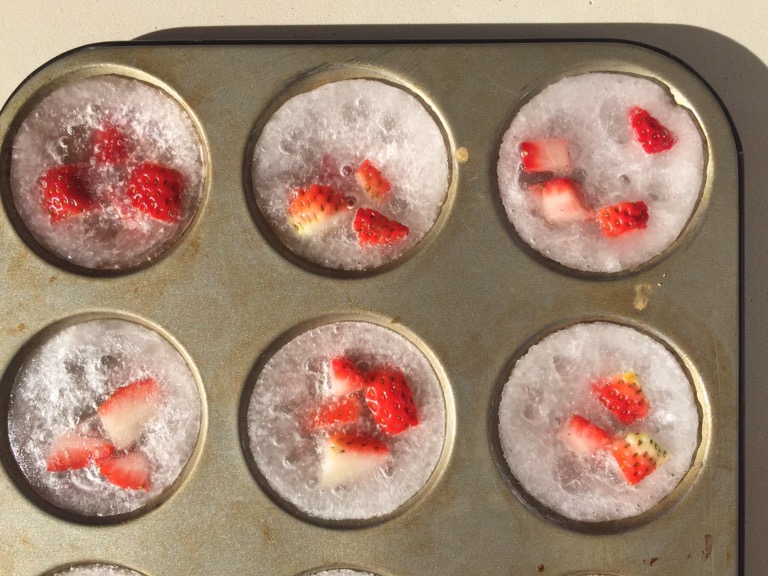 Lifehack: freeze fruit in ice cubes with lemonade so that when the ice cubes melt in your drink, they don’t dilute your drink. If you’re me and short on time, then you’ll cheat and use store-bought lemonade for your ice cubes. If you do have time though, use some of the homemade lemonade to make the ice cubes. I promise that your guests will think that it is so worth it.