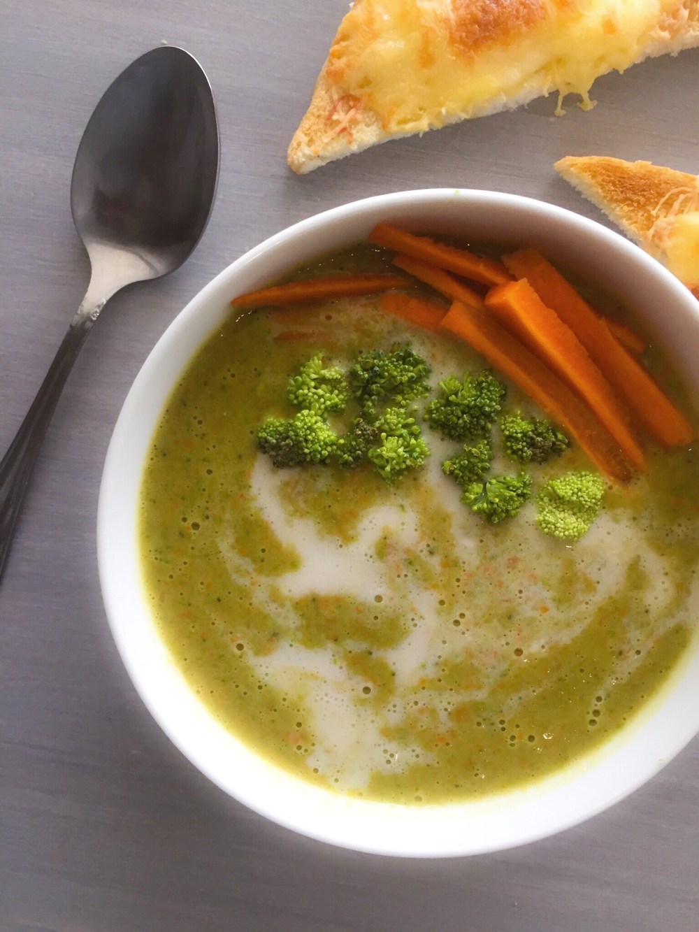 Whilst I was messing around in the kitchen, my heart was screaming for me to try soup. And why shouldn’t it? There’s nothing better than a warm hug in a bowl, and that’s exactly what this is all about. This wasn’t my first encounter with soup having posted this Spicy butternut and coconut soup a year ago on the blog. My fridge happened to be overflowing with broccoli at this point so I chose to go down that route. Then my imagination got the better of me and I threw in carrots, garlic, peas and some mint just to keep it interesting. You know how it is with me, always got to take it from 0 to 100.