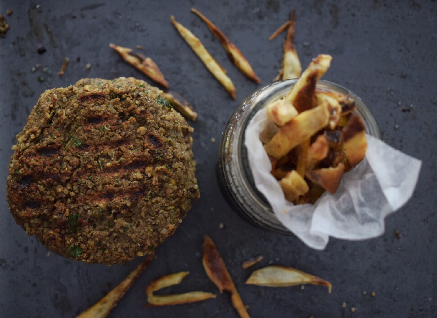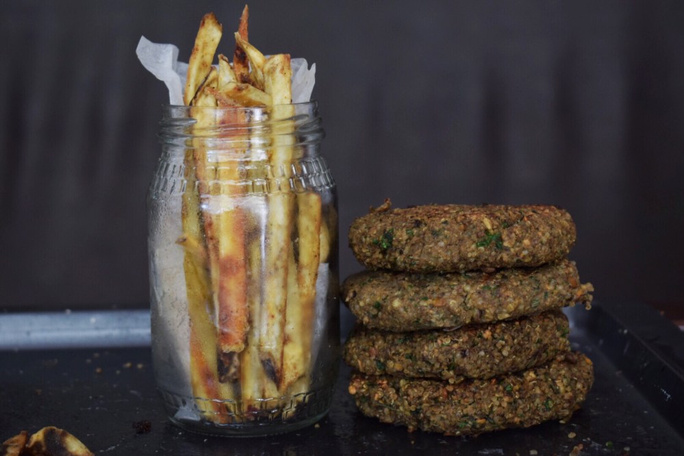Loaded Quinoa Lentil Burgers with all the Fixings. makes 4 patties
