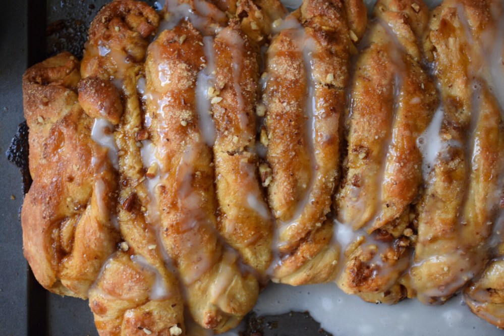 - Once you’re done shaping the dough, sprinkle the extra brown sugar/nut mixture you’d set aside earlier over the dough. If desired, you can also drizzle any extra caramel sauce you have left over the dough. Bake the bread in an oven at 180°C/350°F for between 35 and 40 minutes, or until deep golden brown. Let sit for at least 10 minutes at room temperature before slicing and serving. Best served warm and on the same day that it’s baked.