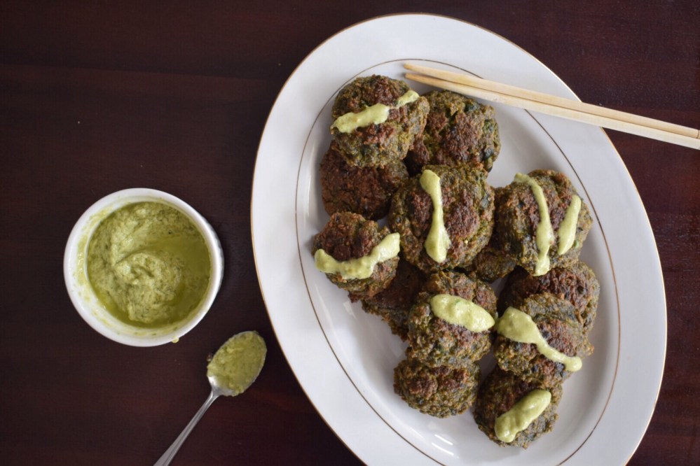 Believe me, I’d long given up on the falafel dream, resigning myself to order from the Lebanese lady at the farmer’s market. If you’ve read my vegan carrot cake pancakes post then you’ll know about the abundance of home grown produce in my home. Among these vegetables, we have some leafy green spinach hanging around. To put it to good use, I blindly added it to my food processor with some chickpeas and quinoa. And whoa. And I mean WHOA. These beautiful things came around.