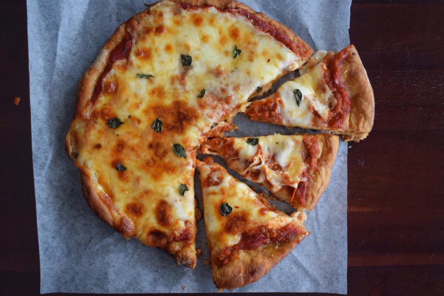 Another strategy that I recently employed is to bake my pizza in a skillet. To see this tactic in action, head over to this recipe. The method is simple: heat a large skillet on the stove until it is sizzling. Dust the hot pan with cornflour and quickly toss the dough onto the hot skillet, making sure not to burn your fingers. Cook the dough for 2 minutes on the stove before adorning with your toppings. That’s simple enough, right?