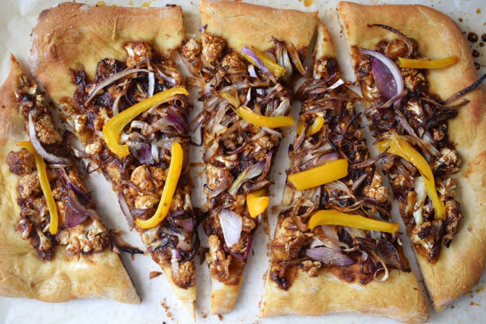For those of you who are gluten free, cauliflower crust is a viable option. It’s easy to prepare, even if you don’t have a blender then you can use a cheese grater to get the cauliflower down to mini-florets. This crust is perfect for those of us who are fans of super-thin crusts, it produces a beautiful thin crust that is golden, crunchy and all for a fraction of the calories! There a couple of drawbacks with the cauliflower crust- it is much easier to yield a soggy crust. To avoid this dilemma, you have to make sure to squeeze all the water out during preparation. You also can’t go topping crazy with this crust because of how thin it is. Overload the crust and the pizza will just fall apart in your hand. You have to exercise restraint with this one. Ready to give it a go? In the photo below, I made this Chickpea Cauliflower Crust Pizza by Tieghan over at Half Baked Harvest. It’s well worth a try!
