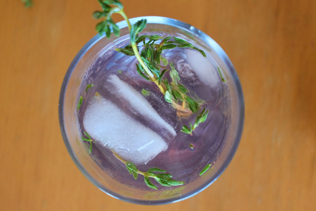 - When serving, ladle 1 tbsp of the berry mix into the bottom of your glasses (or cups, I don’t judge) and top with a couple of ice cubes. Fill the glasses with the wine mixture until ¾ full and throw in a thyme sprig to be decorative. If desired, top with extra soda water. Enjoy!