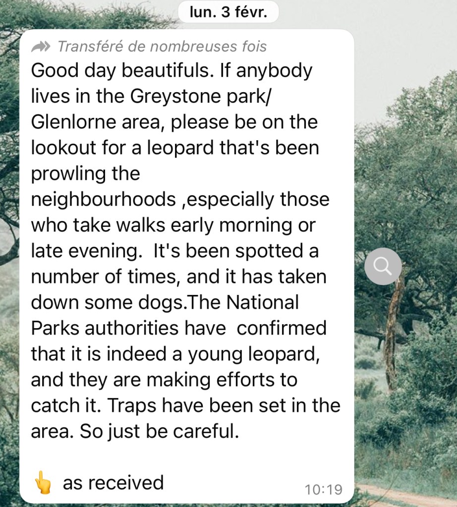To add to the intrigue, our neighbours were also reporting sightings of a leopard prowling, supposedly in pursuit of its usual dinner. Sitting 12,500km away in the concrete jungle New York, I was taking these stories with a heavy dose of salt. Was I now supposed to believe our house had magically transformed into a national park?