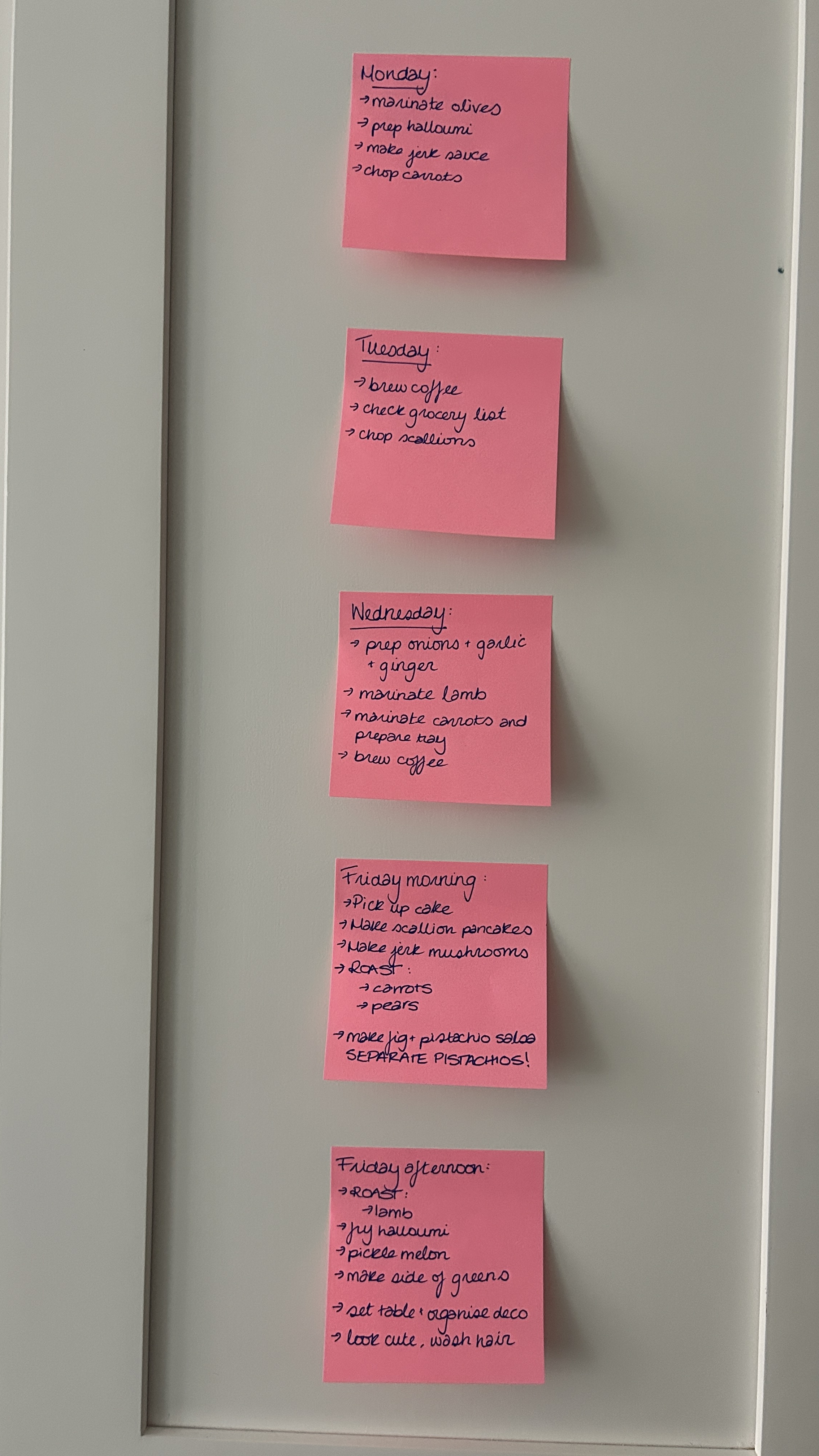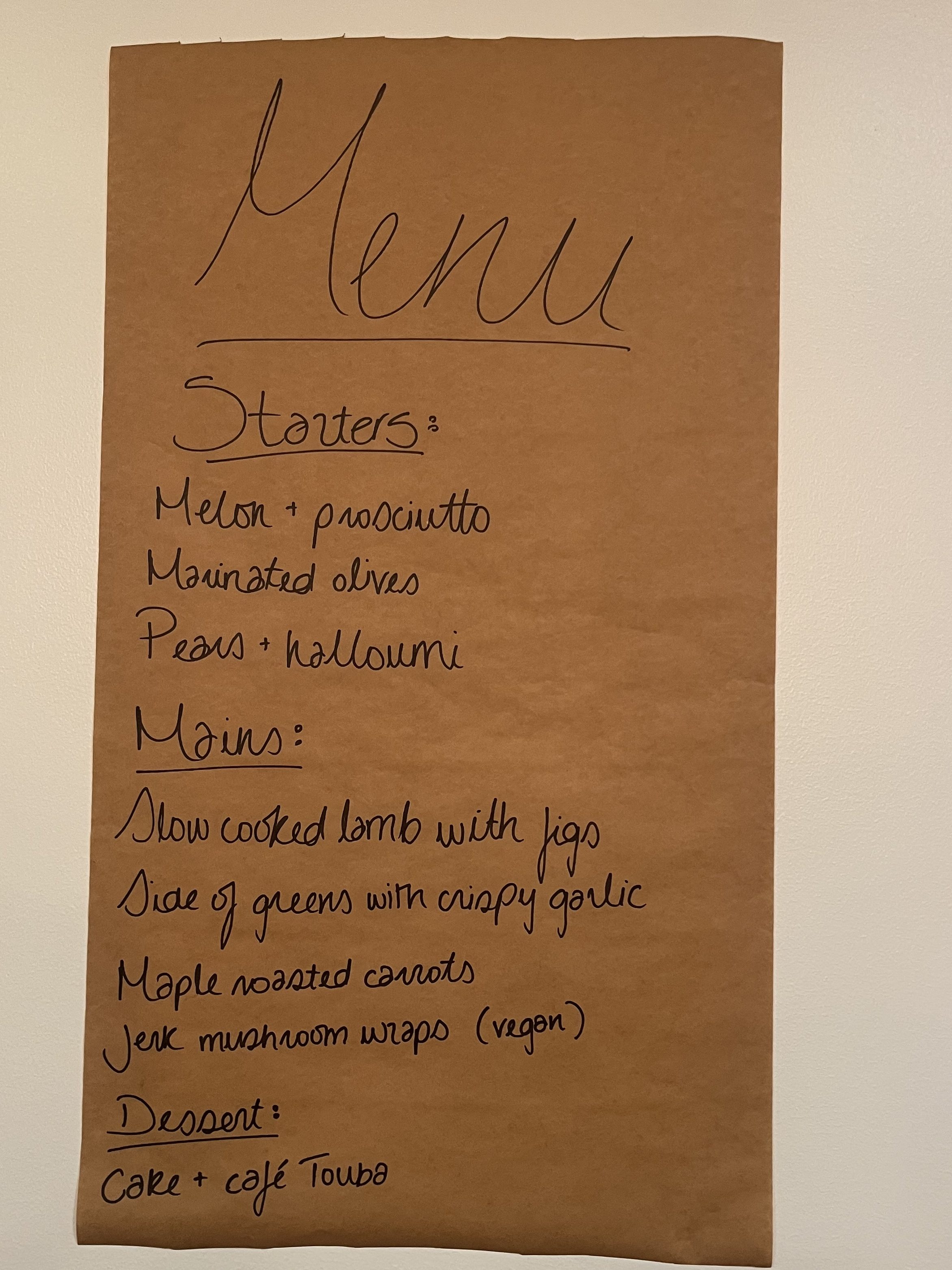Now that the plan was set in motion, it was time to execute. Top of the FAQ list for this event was how I was able to organise all of this by myself. To give a concrete breakdown of the timeline: I finalised the menu about ten days before the event, spent three days working my way through the shopping list (I cleaned the halal butcher of all the lamb shoulder that was in stock) and started prepping for the dinner five days prior. Take that to mean that my hands reeked of onions and garlic for five consecutive days. All of this between the usual academic and social (mostly social) commitments that you would expect of an MBA program and you’ll come to appreciate this was no small feat. I trekked across town between 4 supermarkets, 3 butchers, 2 farmers’ markets and one exclusive bakery to gather provisions. Thankfully, Amazon was there to fill the gaps for the things I couldn’t carry myself.