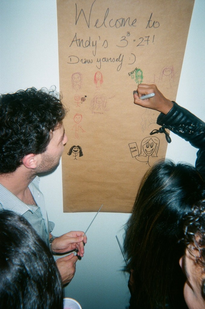 I’ve been passionate about film photography since the world came to a standstill in 2020 and to preserve the memories of this occasion, I ordered disposable film cameras which were scattered around the room for anyone to use. WARNING: remind your guests to turn on the flash before they take photos. Pinterest provided ample inspiration for table arrangements but what was even more ingenious was pinning paper, crayons and sharpies on the wall for party guests to let their creative sides loose. To top off the night: I ordered packs of sparklers that everyone could light when it was time to cut the cake.